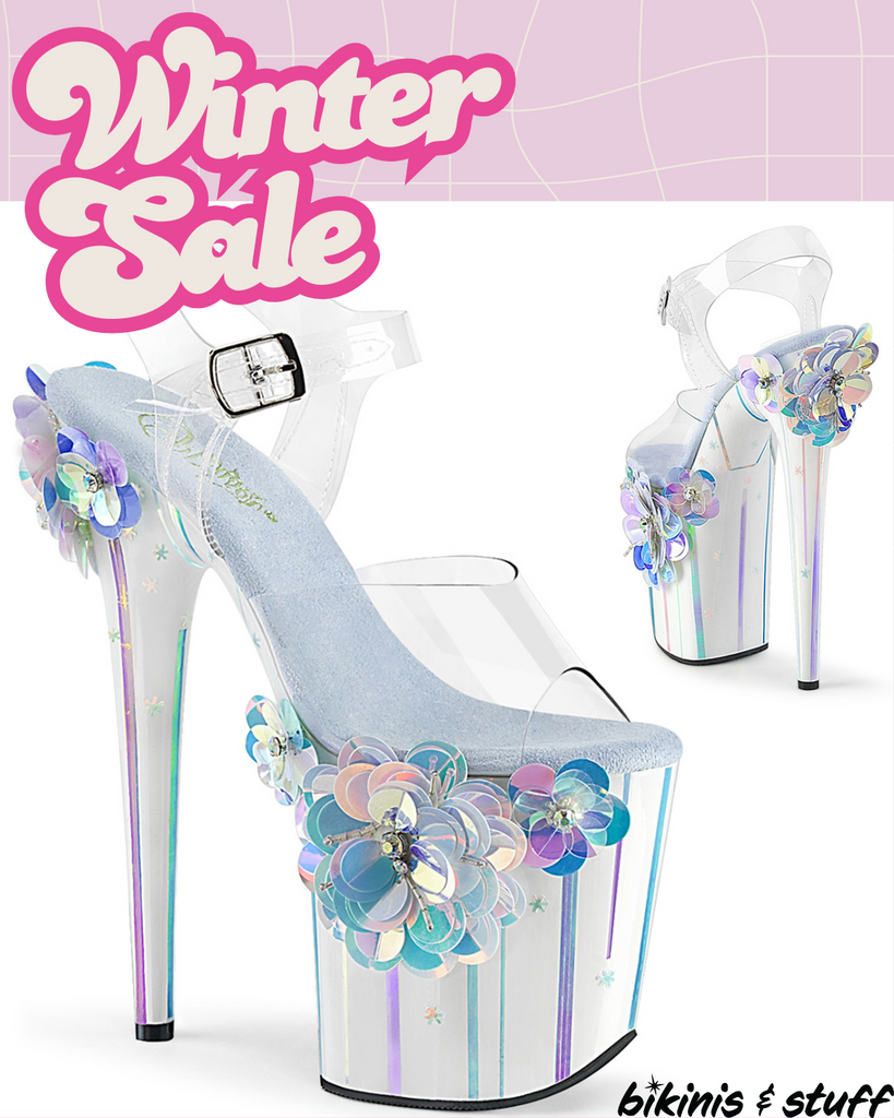 • Sequin flowers appliqué on outer platform
