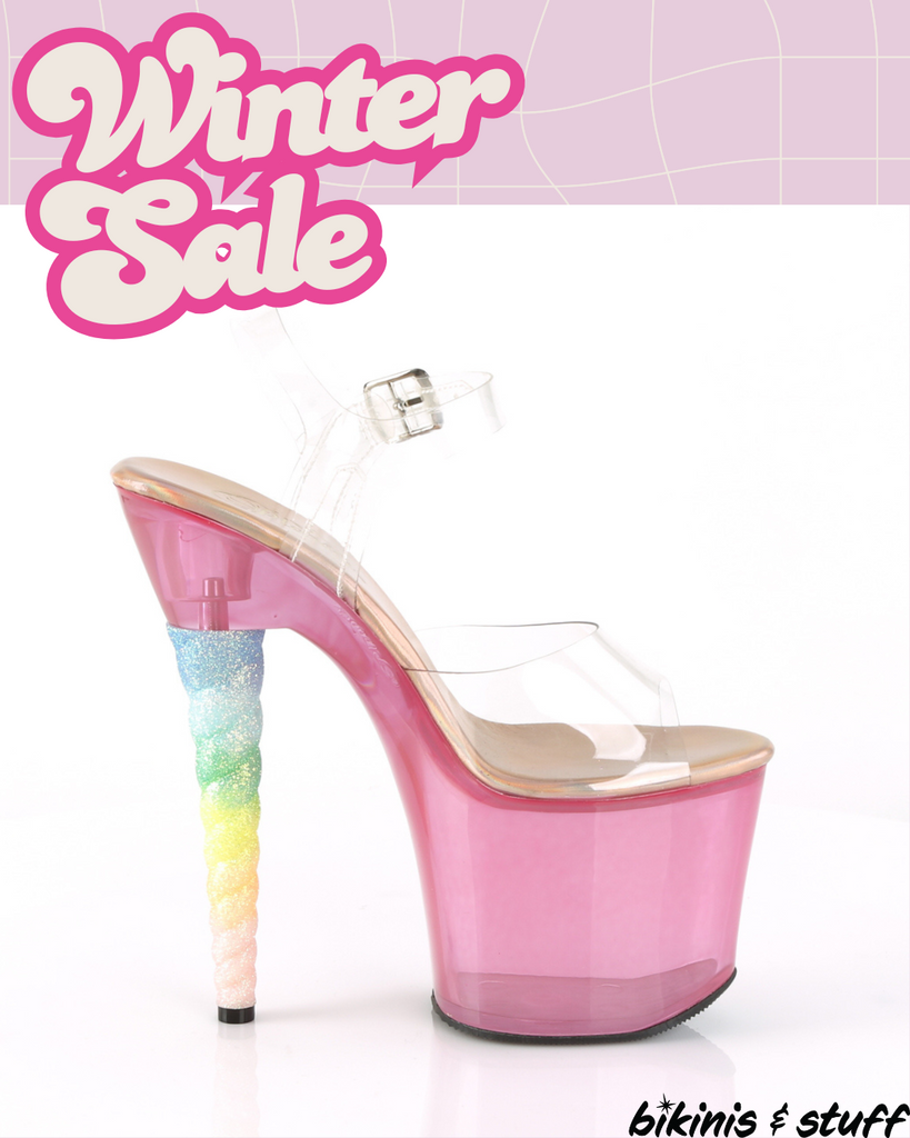 • Featuring Tinted Platform Bottom and Glittered Ombre Unicorn Heel